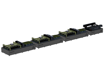 滿足剛性玻璃基底表面的薄膜類太陽能電池刻蝕,采用四臺設備分別對應不同薄膜電池不同功能層刻蝕需求。