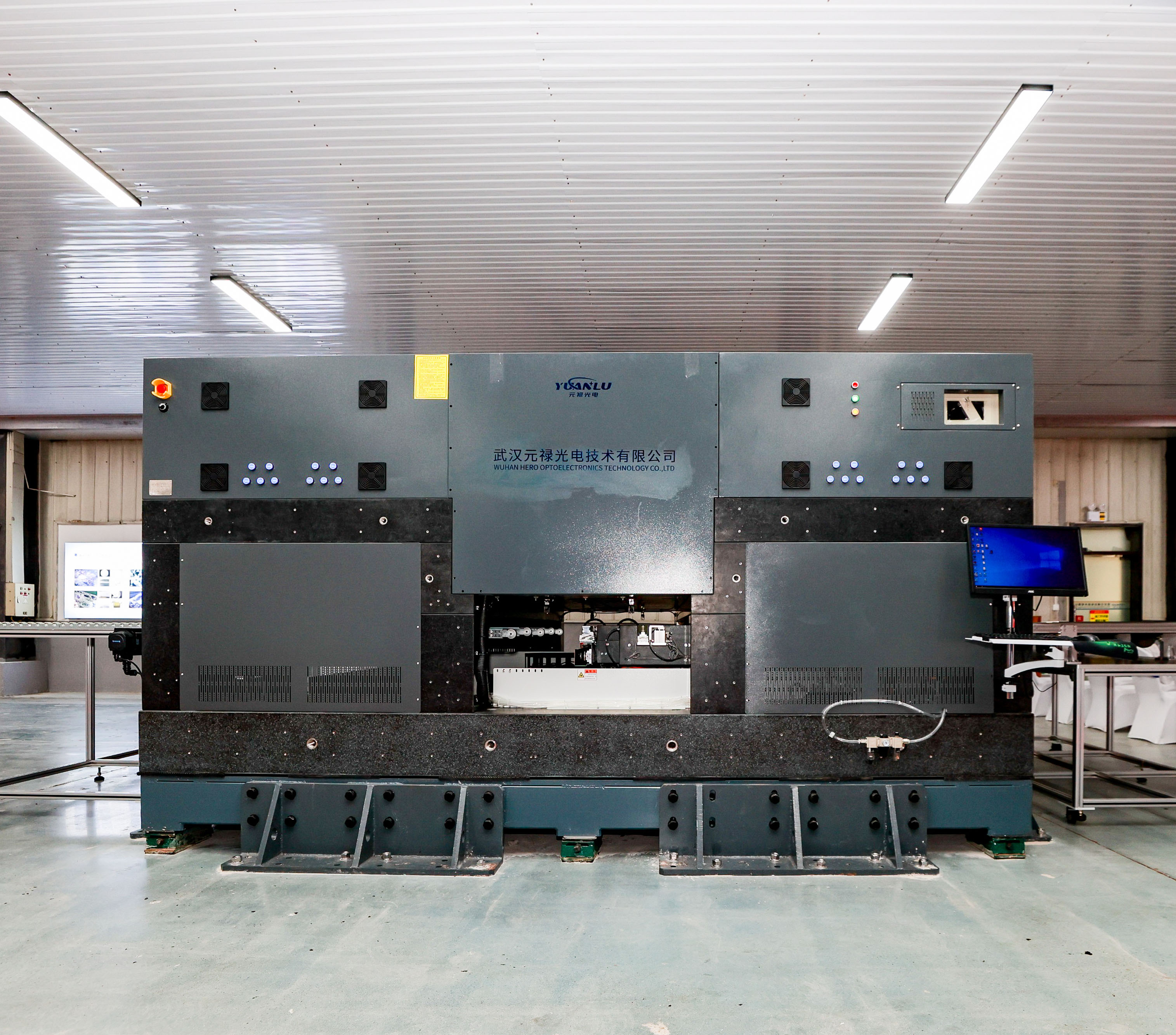 該設(shè)備為全球首臺(tái)“20振鏡頭1200mm×2400mm鈣鈦礦高速激光刻蝕成套設(shè)備”,由元祿光電和華中科技大學(xué)共同研發(fā),不僅在國(guó)內(nèi)國(guó)際首開先河,更以行業(yè)領(lǐng)航者的姿態(tài),引領(lǐng)技術(shù)潮流。作為國(guó)內(nèi)外首發(fā)的創(chuàng)新之作,此套設(shè)備是目前市場(chǎng)上極少數(shù)能夠生產(chǎn)超大尺寸1200*2400mm組件的鈣鈦礦太陽(yáng)能電池激光刻蝕設(shè)備。